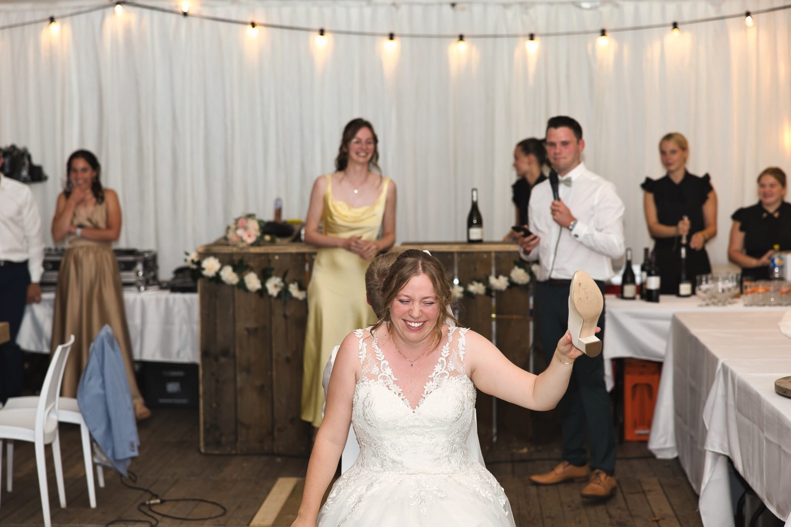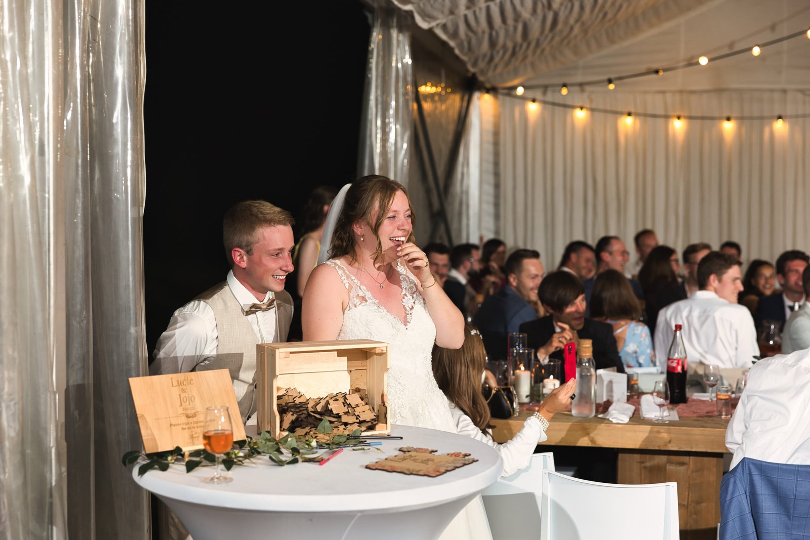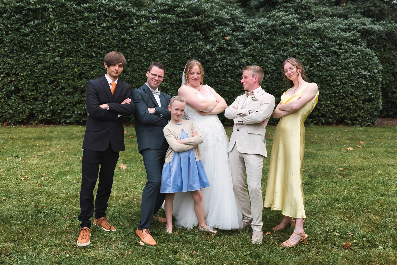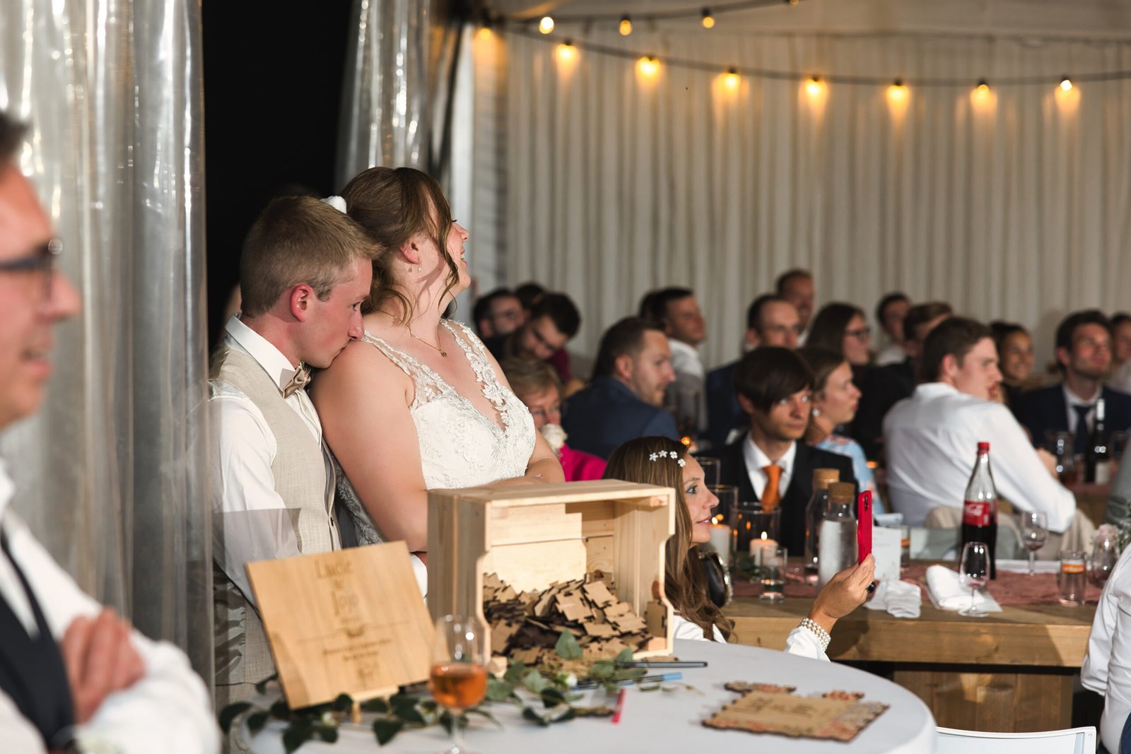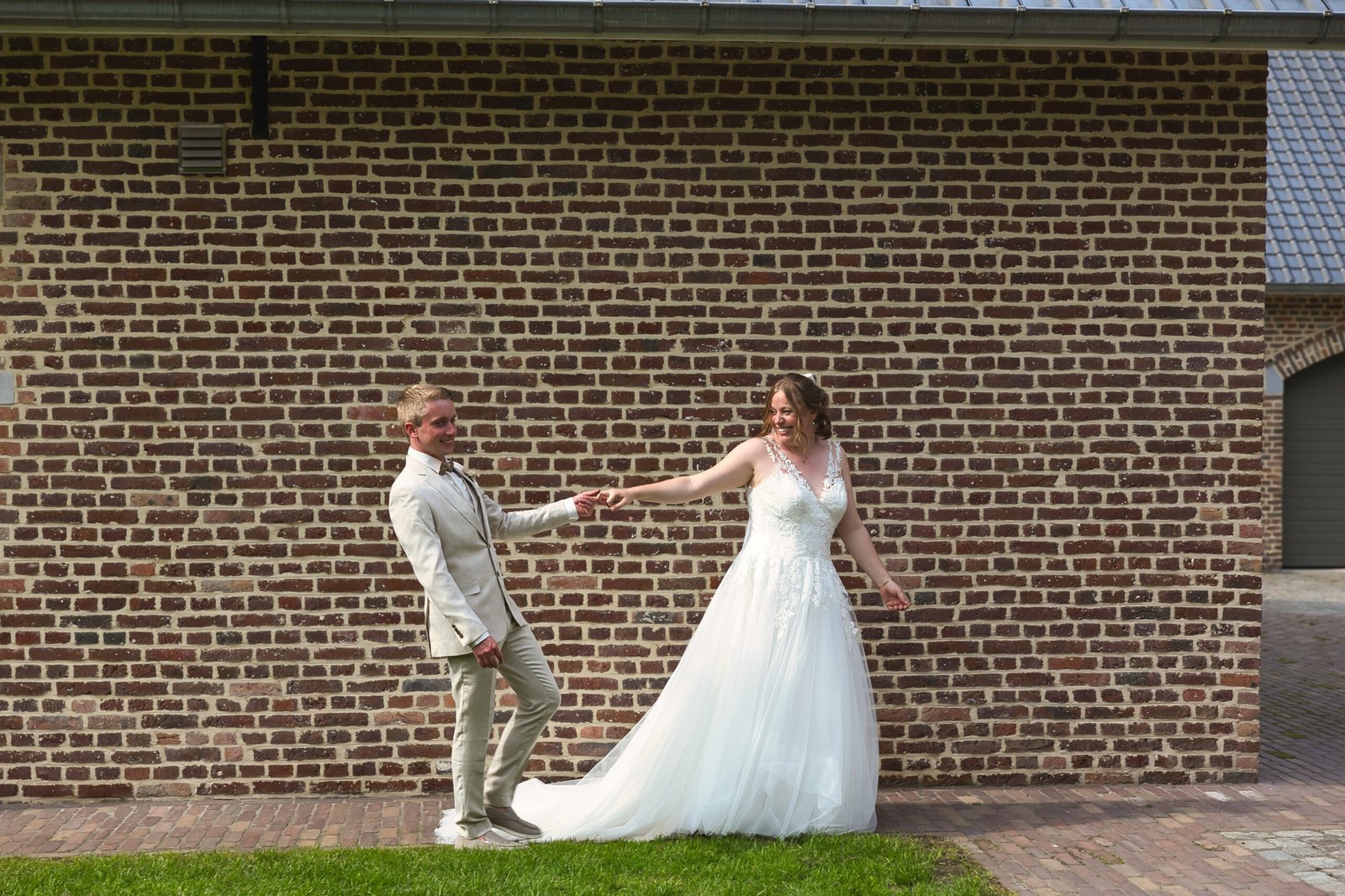 De nazomerzon, het open landschap en de intieme setting zorgden voor een sfeer waarin emoties vrij spel kregen. Van stille blikken tot ongefilterde lachbuien: dit was zo’n buitenhuwelijk in Limburg waar alles vanzelf liep. Geen regie, geen overdaad — alleen pure momenten.